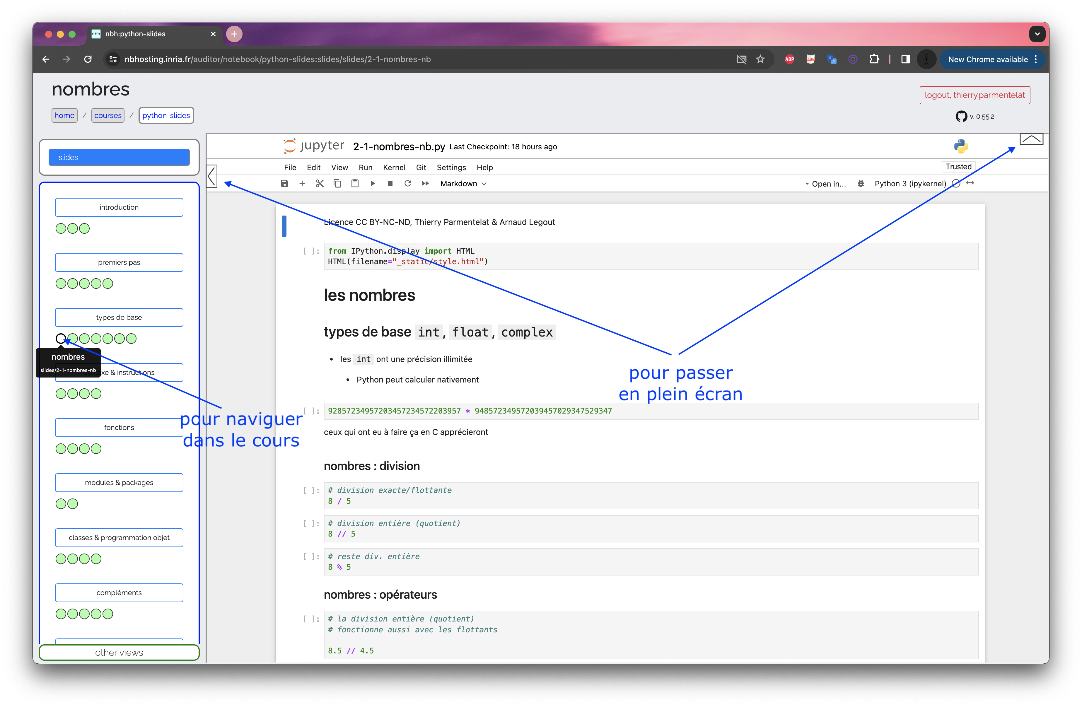 on peut suivre le cours sans installation locale (plateforme nbhosting, jupyterlite)